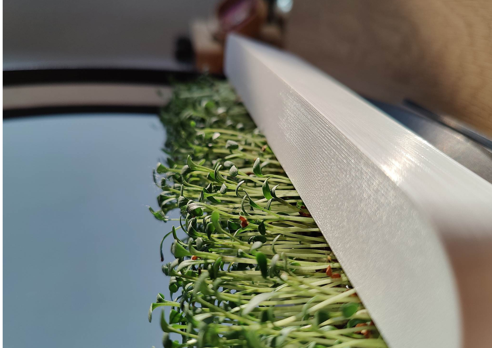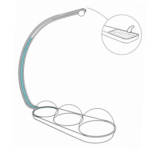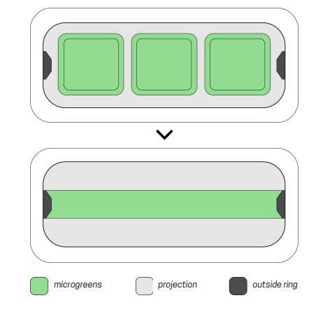 The product would notify its user that the microgreens were in need of water by rotating slightly (+/- 30 degrees). Then water could be added through one end of the ring. By pressing the other end, the ring would move back to its original position.
