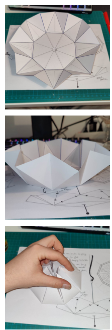 After making a first prototype and deciding on the overall shape and function, we had to go more into detail. Our professors made the suggestion to increase the amount of rotation of the outside ring to further accentuate its movement. This meant we also had to rethink the design of the base, to accomodate for the increase in mechanical parts.