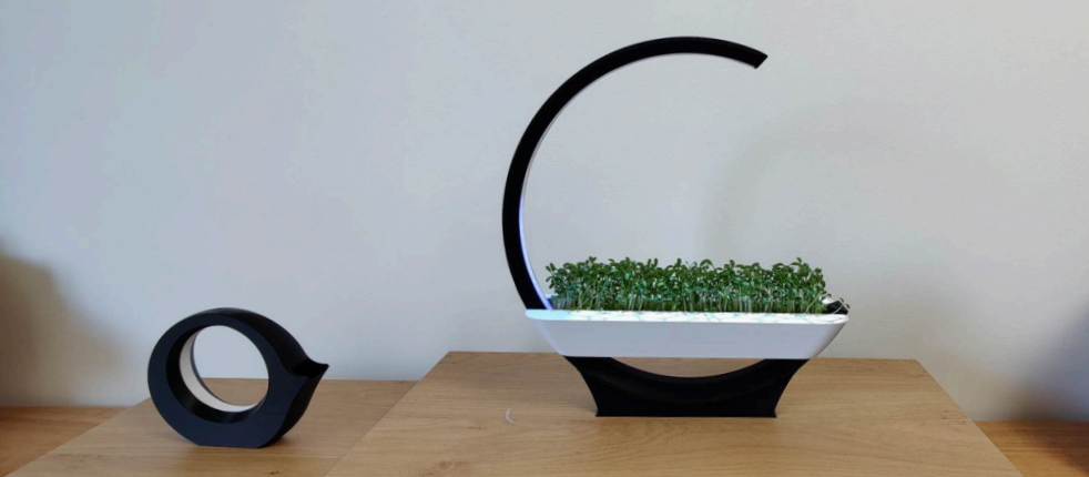 planter and consequently notifies the user when the microgreens need water. Water